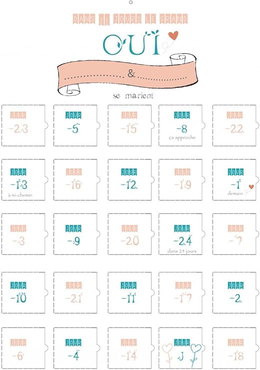 Wedding Advent Calendar Countdown Gift In French Amazon Co Uk Kitchen Home from images-na.ssl-images-amazon.com I think it turned out pretty nicely! I made a wedding advent calendar for my best friends big day. This is a great example of how to keep this concept simple and effective. March 2012 in destination weddings discussions. With beauty products, wine and even cheese coming in hot as the coolest advent calendar fillers right now, there's pretty much no reason not to love this. 5 out of 5 stars (12) $ 11.44. There are many diy advent calendar ideas you can use to create a fun advent calendar that your family will love. I made a wedding advent calendar for my best friends big day.